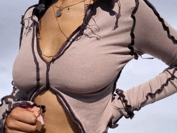 Nibber Autumn New Patchwork Broken Design Mesh Crop Top For Women Punk Style Long Sleeve T-shirt Street Casual Wear Tees Female