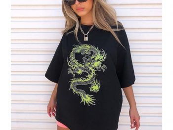 Rockmore Dragon Print T-Shirt Women Plus Size Short Sleeve Casual Streetwear Oversized Long Shirts Basic Tshirts Ladies Summer