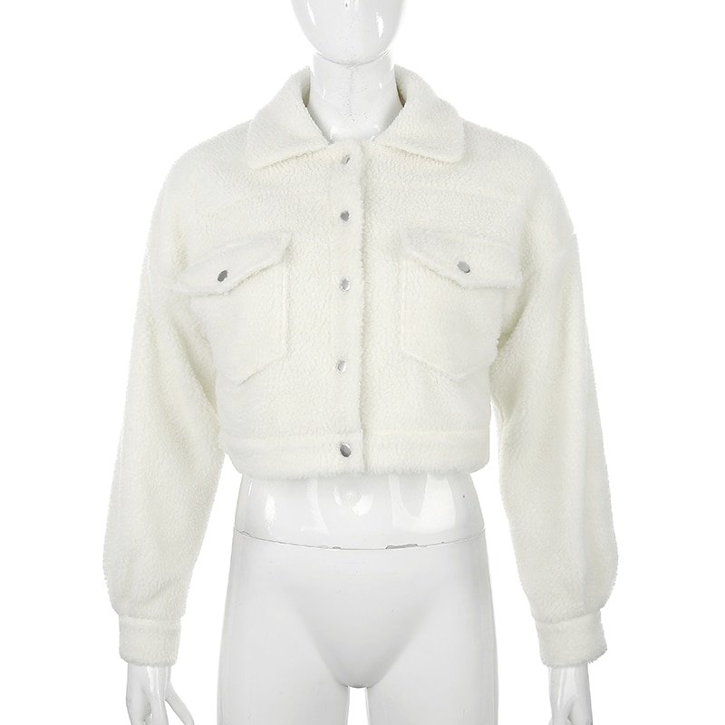 Darlingaga Fashion Lamb Wool Autumn Winter Coat Women Jacket Fleece Shaggy Warm Cropped Jackets Overcoat Single Breasted Outwear