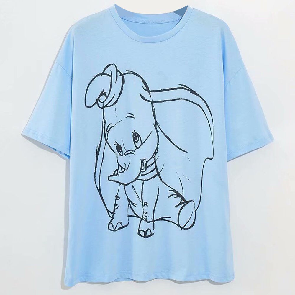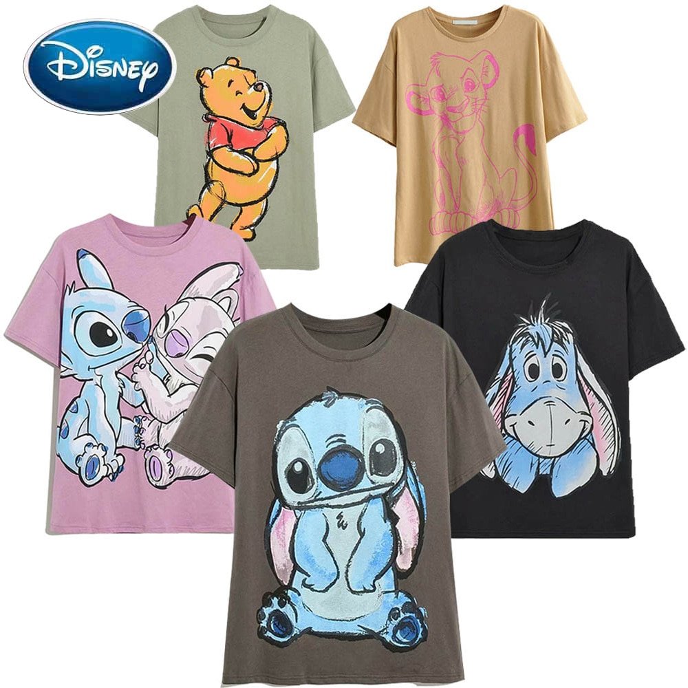 Disney Family T-Shirt Fashion Winnie the Pooh Mickey Mouse Stitch Fairy Dumbo SIMBA Cartoon Print Women T-Shirt Cotton Tee Tops