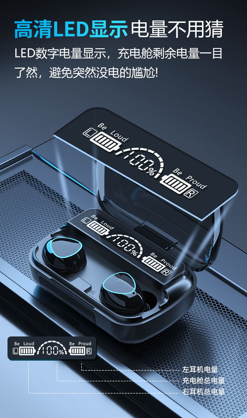 TWS M10 wireless bluetooth headset touch power display 5.1 sports noise reduction binaural 数量