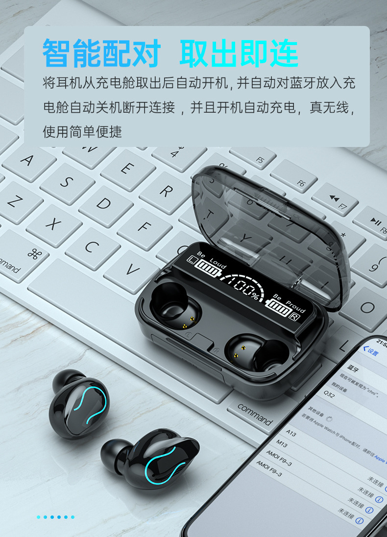 TWS Q32 new product private model Q32 wireless bluetooth headset LED large screen digital display mini touch TWS sports binaural 数量